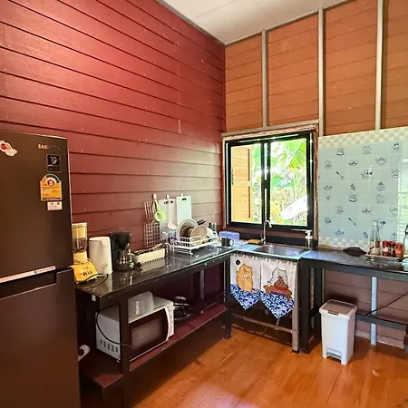 The Ko Pha Ngan accommodation offers self-catering amenities, such as an equipped kitchen, and an outdoor dining area for guests' convenience. The kitchen also offers an electric kettle, a fridge, and kitchenware.